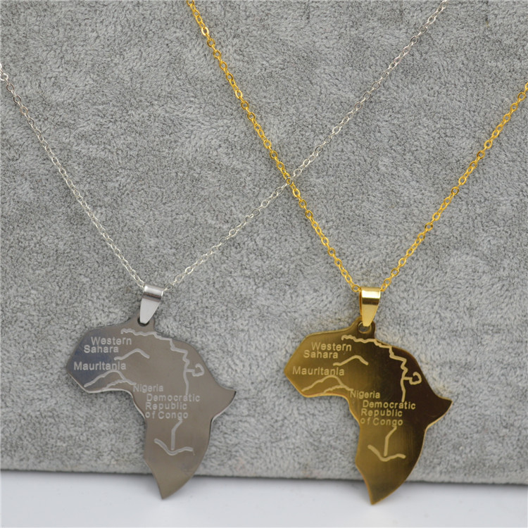 国境を越えた少額卸売りアフリカ地図ヒップホップペンダントステンレスカップルのネックレス卸売り