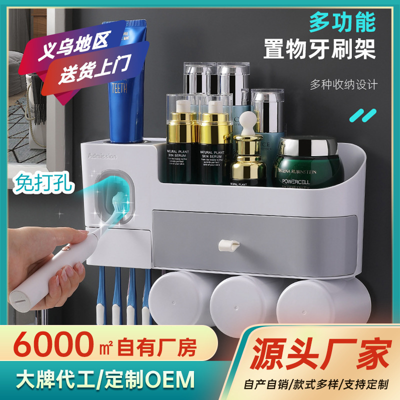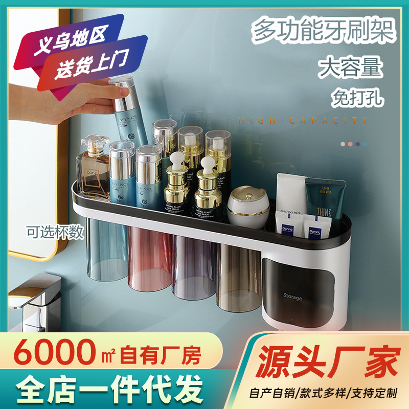 浴室穴なし歯ブラシホルダー多機能歯ブラシホルダー用品カップホルダー壁掛け歯コップ歯磨き粉ラック卸売り