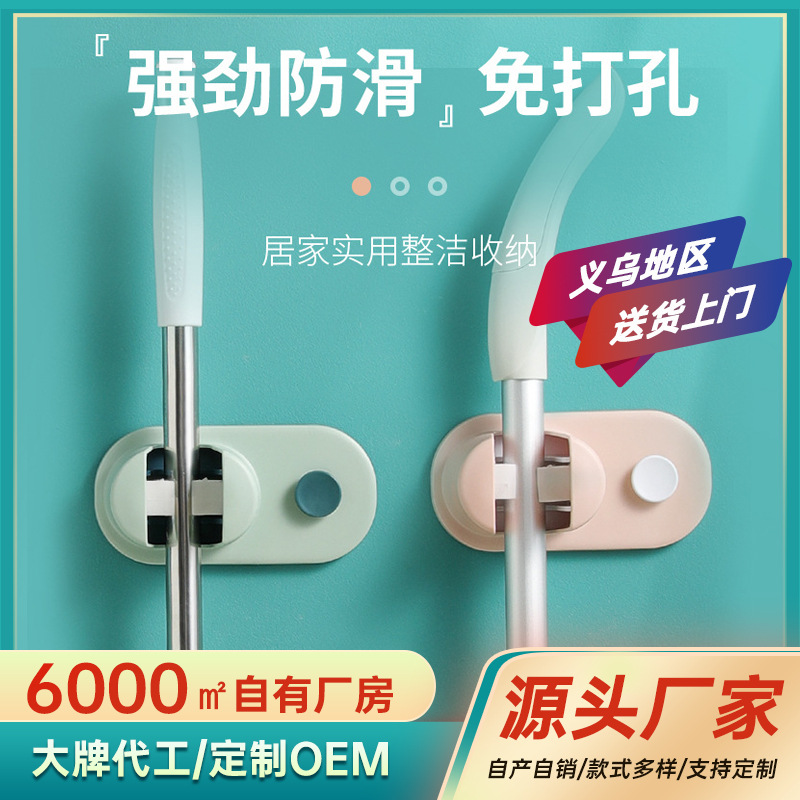 穴なしモップクリップ強力壁掛け家庭用モップラックトイレ神器モップラック固定収納ラック