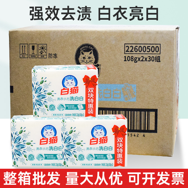 白猫無リン洗濯石鹸ダブルパック洗濯小さな正方形石鹸洗濯白固体洗剤卸売全箱石鹸