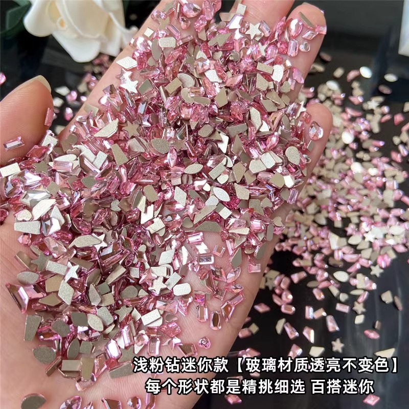 Miniピンクの平底異形ドリルネイルアクセサリーネット赤爆金トランペット水滴馬眼ドリル爪装飾ダイヤモンド