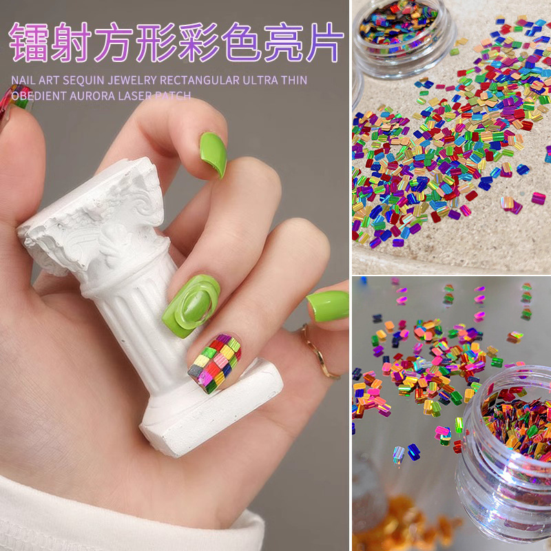 カラフルな四角いネイルアートのスパンコールネット赤爆発正方形の長方形はdiy爪の装飾品のカラースパンコールをつなぎ合わせます。