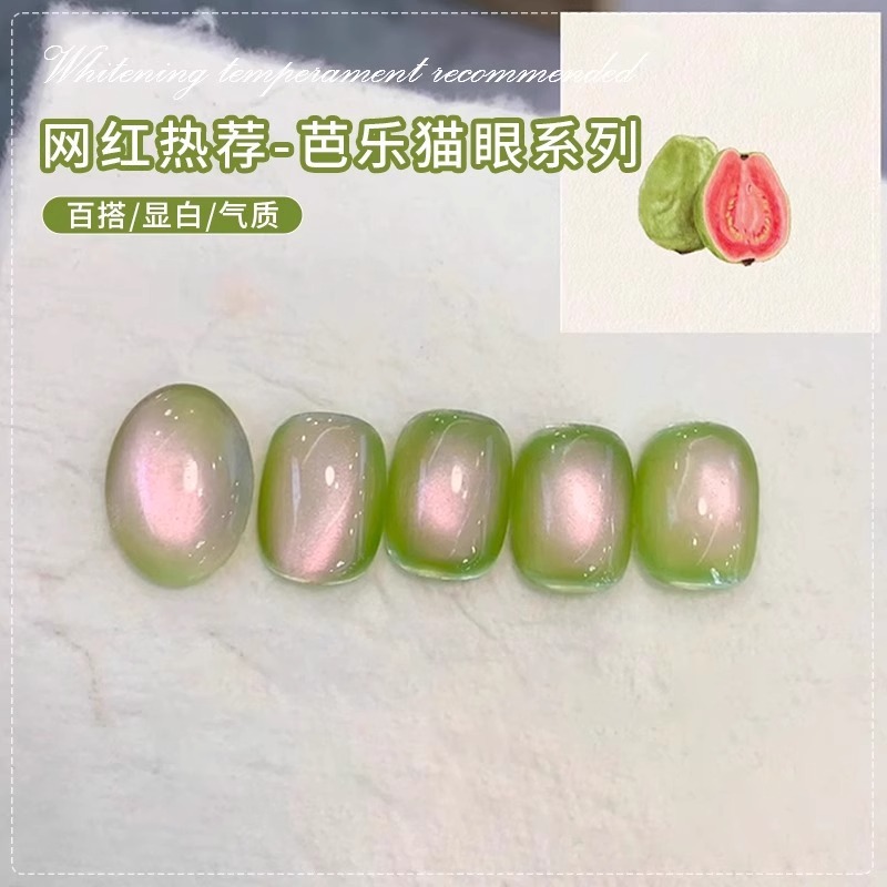 ネット赤爆金バービー猫眼甲油ゴム2025年新緑色ガラスビーズ猫眼ゴム白ネイルアート専用