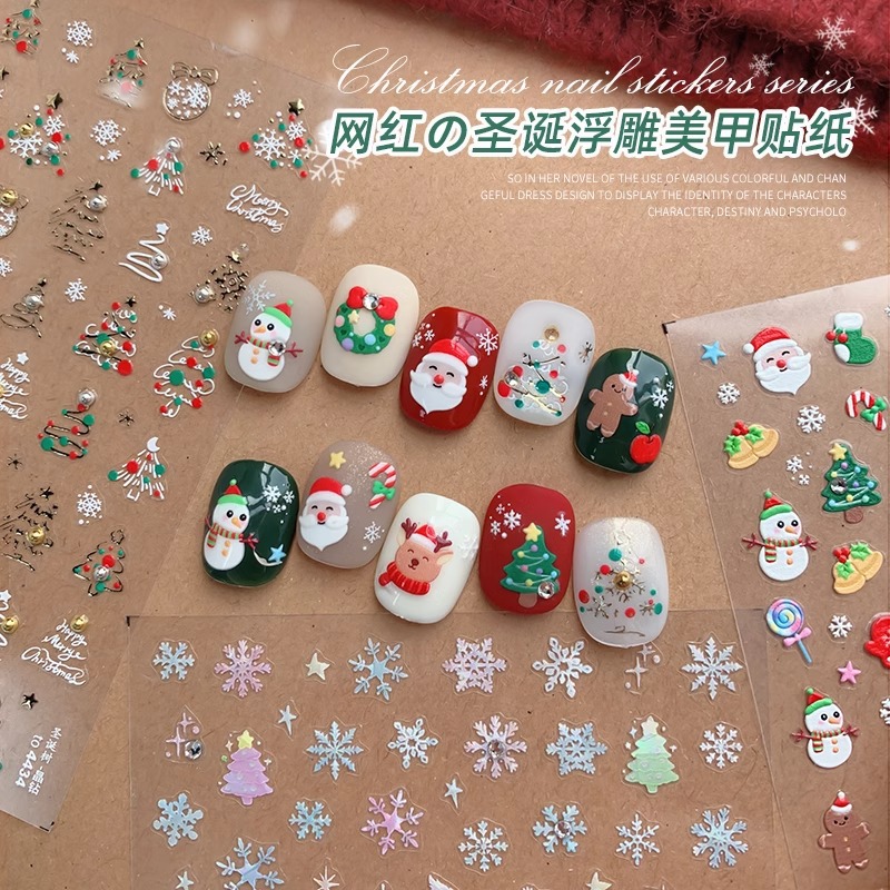クリスマスネイルステッカーかわいい漫画雪雪だるまちょう結び星立体レリーフクリスマスネイルステッカー