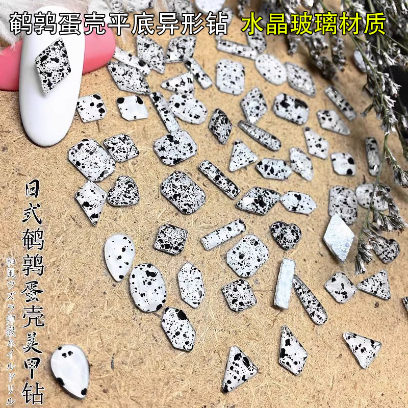 うずらの卵の殻の水晶のガラスの平底の異形のドリルのヒョウの紋様の爪のドリルの秋冬のネットの赤い爆発の爪のドリルの小さいアクセサリ