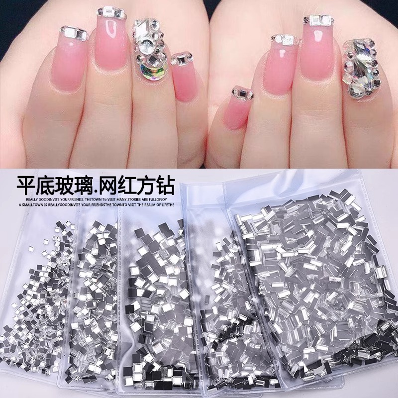 クロスボーダー平底ドリルネイルアクセサリー白い長さの正方形の鏡のレンズの正方形のガラスの異形の爪のドリル