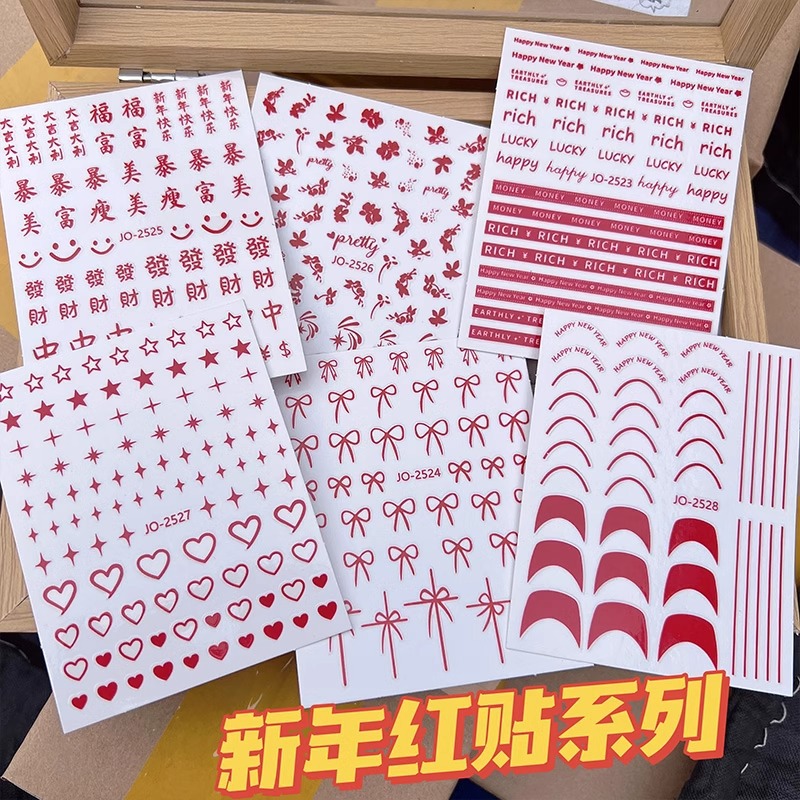 赤い新年のネイルの透かし彫りのシールのフランスの蝶結びの愛の星は金持ちになります。