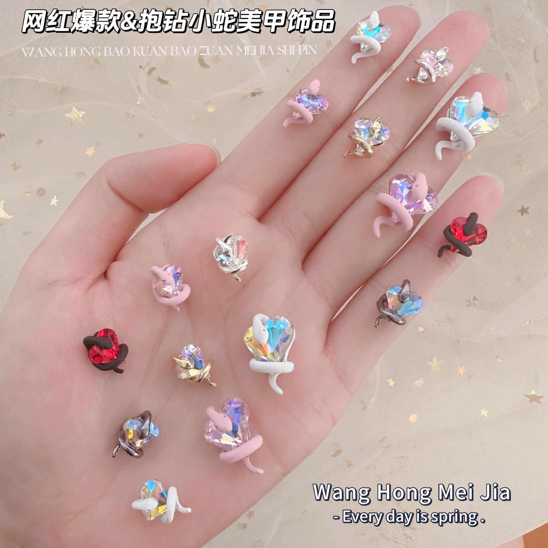 ダイヤモンドの小さい蛇のネイルアクセサリーのネットの赤い爆発の合金の立体の愛の爪のダイヤモンドの指の水晶のガラスのネイルアートのダイヤモンドの装飾品