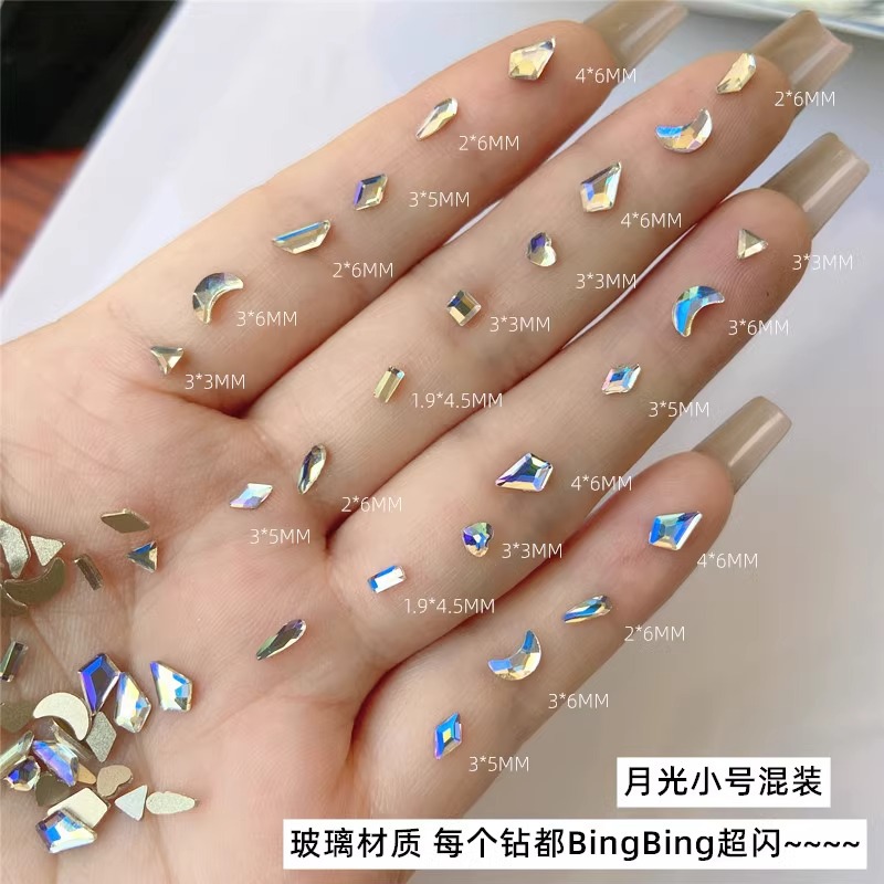 月光色miniネイルドリル混金ネット赤爆閃水晶月光小規格平底異形ドリルネイルアクセサリー