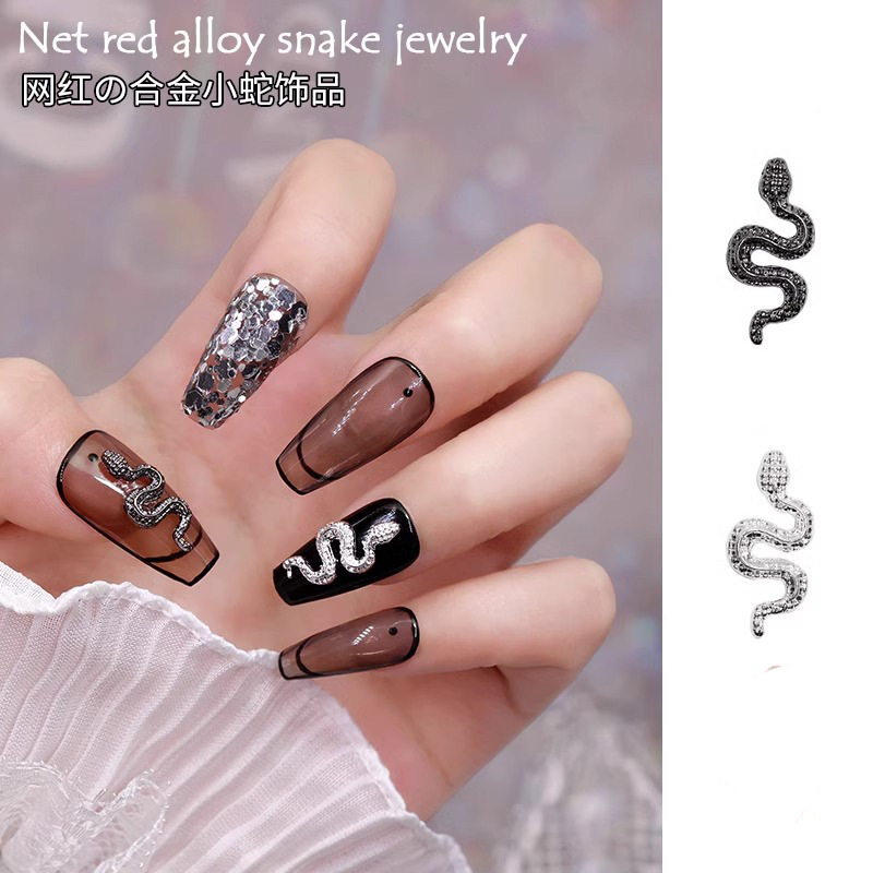 合金の蛇のネイルアクセサリーの銀色の古銀のかわいい漫画の小さい蛇のギャルの金属の立体の軽い豪華な爪の装飾品