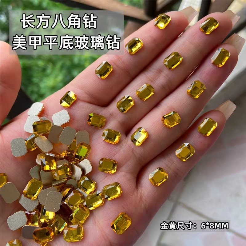 ネイルの長方形の八角のダイヤモンドのアクセサリーのネットの赤い爆発の平底の異形のダイヤモンドの金色の黄金の黄色の水晶のネイルのダイヤモンドの装飾品