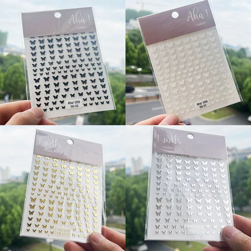 蝶ネイルアートステッカー 2025 新しい小紅書人気の黒と銀の小さな蝶ネイルステッカーネイルアートデコレーション