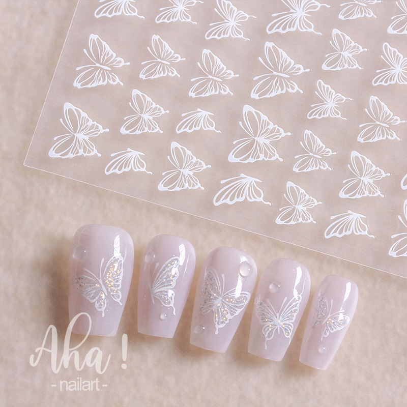 黒と白の蝶のネイルステッカーの卸売りネットの赤い爆発の手描きの透かし彫りのかわいい爪はdiyのゴムの爪を貼って貼ります。