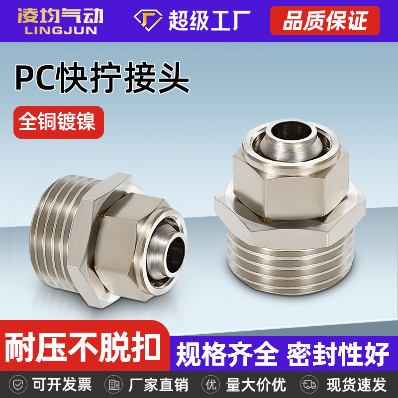 凌均気動部品気管快速継手ワンタッチエアコンプレッサのエアポンプねじ直通pc 8/10/12-0203