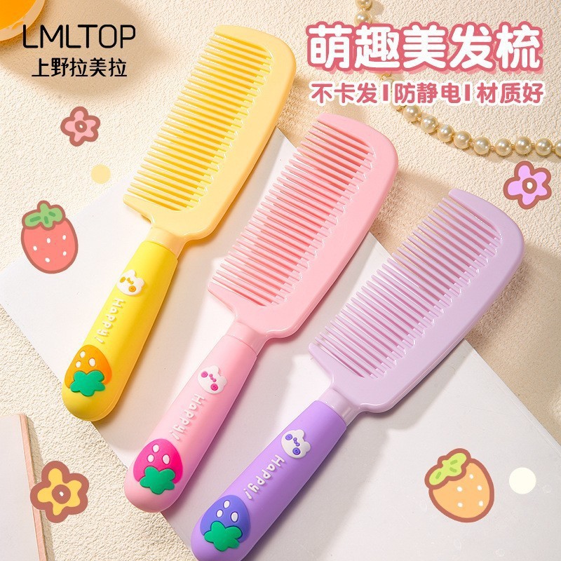 かわいいアニメの子供の女の子の櫛は家庭で携帯しています。