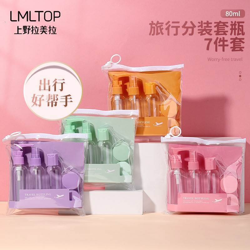 Lmltopトラベル分注ボトル7点セット80mlスプレーボトル圧瓶乳圧瓶空ボトルセットsy761