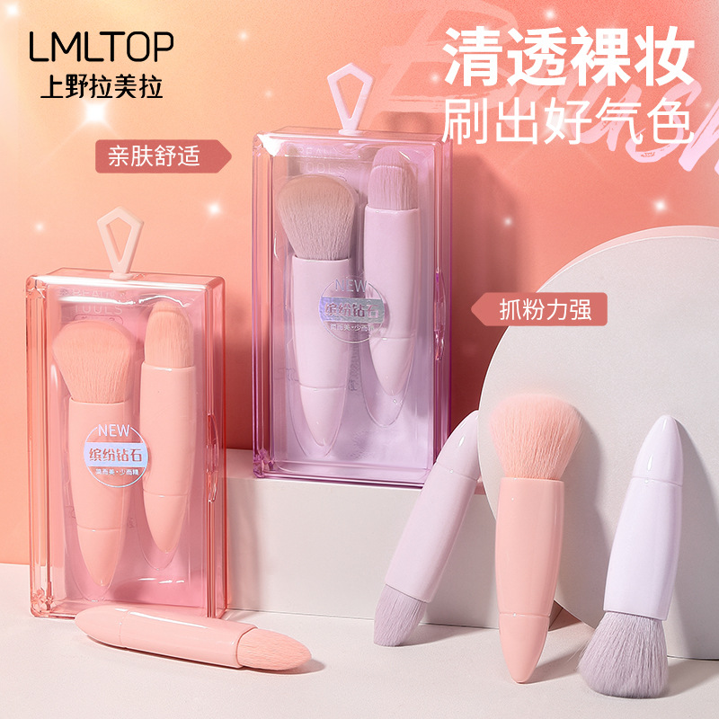 上野ラメラミニ化粧ブラシ2本入旅行ポータブルパウダーブラシ舌型ファンデーションブラシSY611