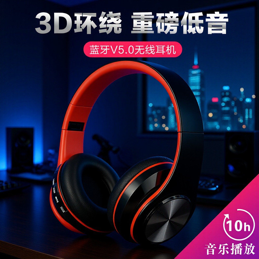 国境を越えた人気商品、立体サラウンドサウンドのヘッドセット型Bluetoothイヤホン、折りたたみ収納、カード挿入、パソコン対応、マルチモードヘッドセット