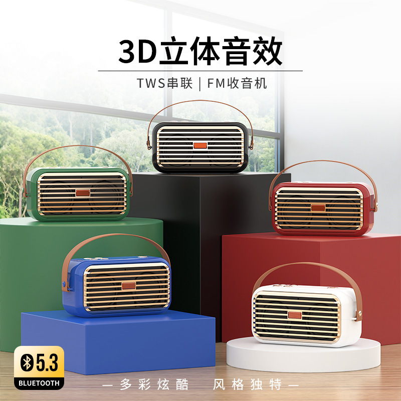 国境を越えた人気のレトロカードワイヤレススマートスピーカーデュアルスピーカーサブウーファーポータブル屋外Bluetoothスピーカー
