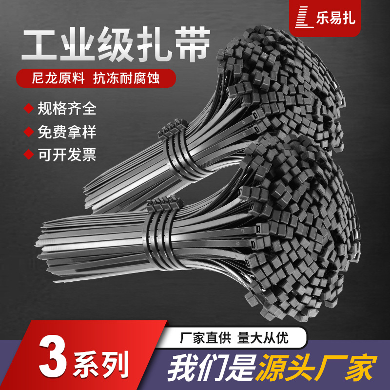 楽易扎卸売5*200*350自動車バッテリー車用プラスチック結束白いセルフロック式ナイロン結束バンド