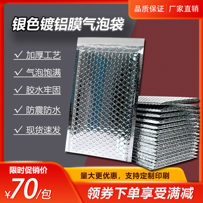 肥厚シルバーアルミフィルムバブルバッグ自己粘着袋包装材料エクスプレス両面包装袋 pe フォームバッグ卸売