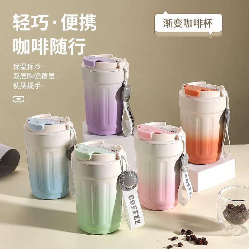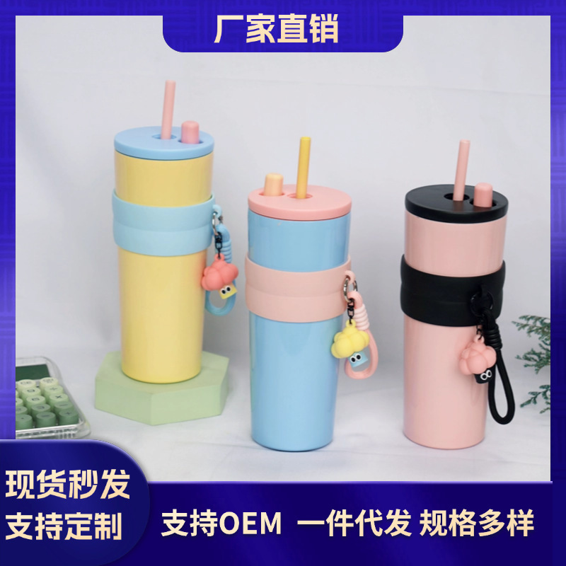 2025年新型ステンレス製保温カップ、セラミック内胆、コーヒーカップ、男女兼用、高級感のあるストロー付き水筒、携帯カップ