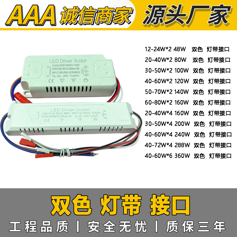 工場直売三段調色温度2色LED駆動電源12-360wライトはインターフェース付き卸売りです。