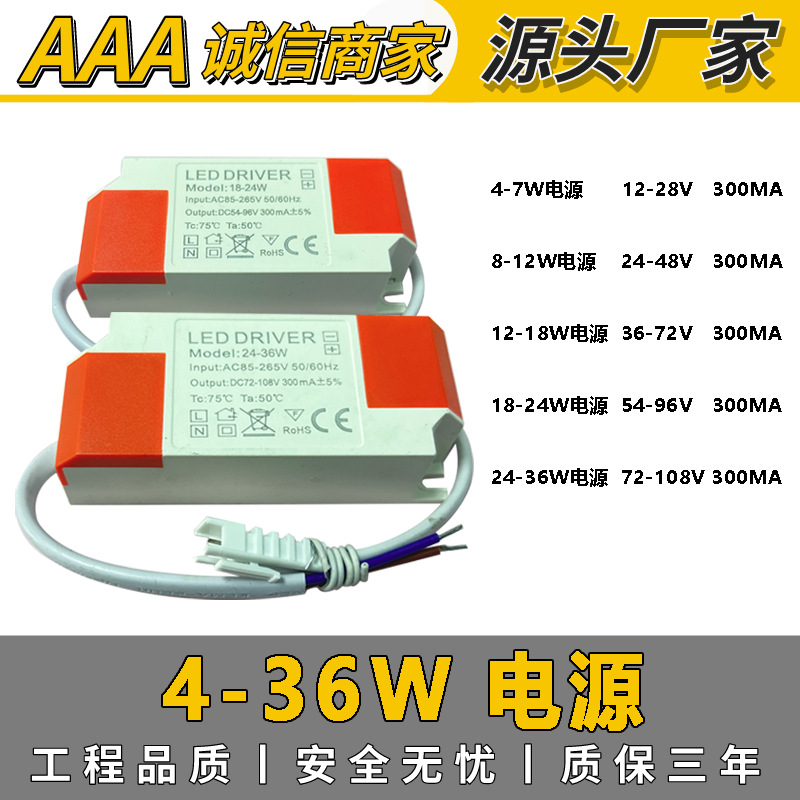 4-7W 300mA外付けLED駆動電源ダウンライト専用定電流幅圧高効率省エネ安全耐久性