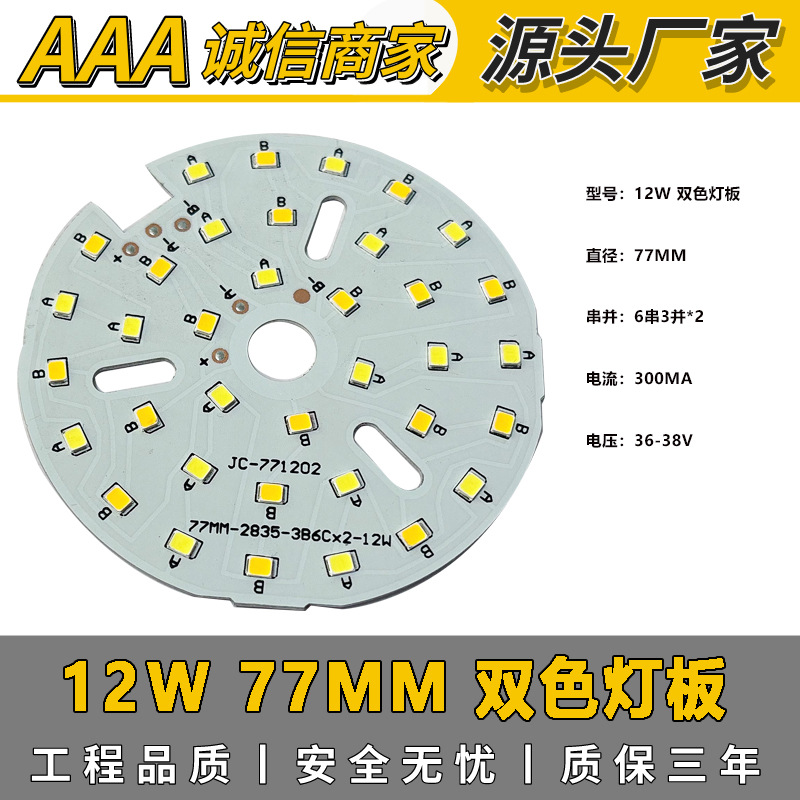 12w二色ランプ板直径77mmボールランプ光源板6列3和 * 2パッチ光源板品質保証3年
