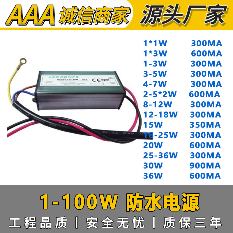 絶縁電源led定電流駆動50w投光器電源LED電源三芯線防水駆動電源