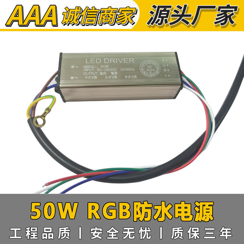 スマート変光電源ip 65半アルミ防水RGB駆動電源50w高圧RGB七彩電源を供給する