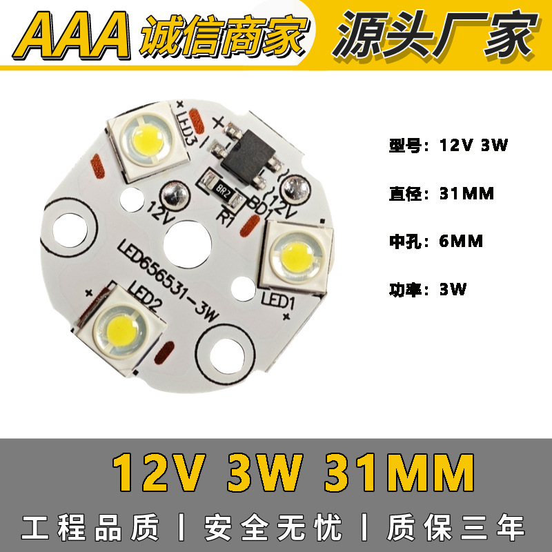 12V 3W 32mm正白暖白2835灯板光源板低圧光源3W大出力を供給する