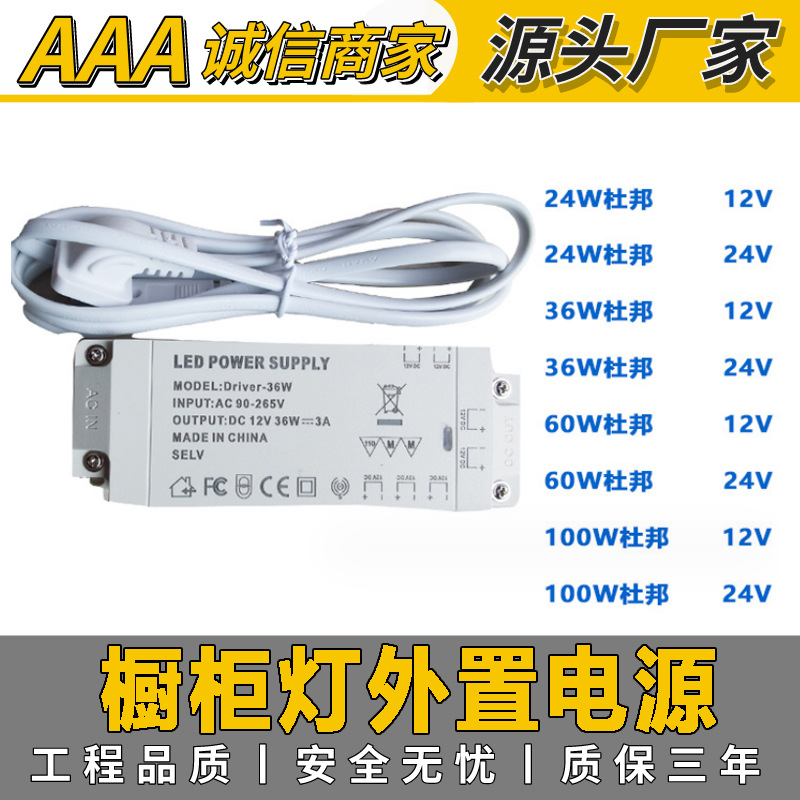 12v/24v品質保証3年ledキャビネットライト電源24w 36w 60wワードローブデュポン電源を供給する