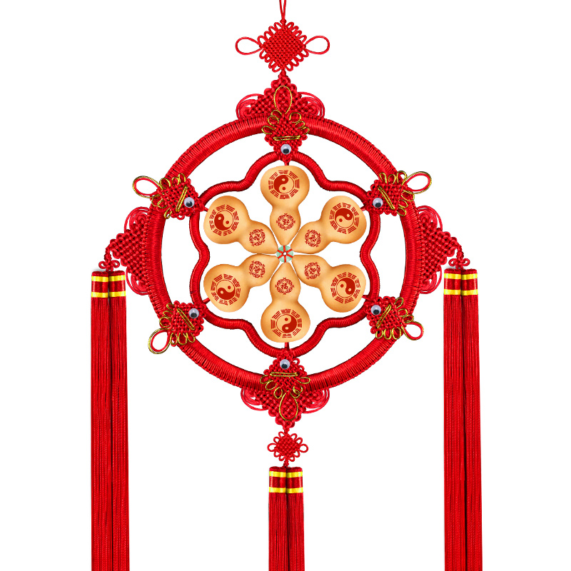 ひょうたんペンダント天然五福ひょうたんホーム大型中国結びリビングルームの壁玄関装飾吊り装飾品