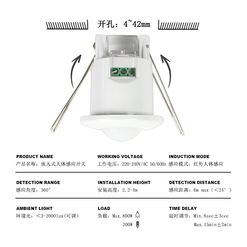 220vハイパワー階段ダブルコントロール赤外線誘導スイッチステップledランプ人体マイクロ波センサー20x20