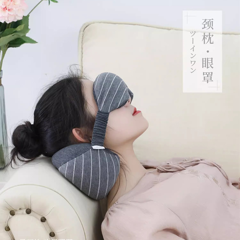 ネックピロー+アイマスクのツーインワン!旅行、車、オフィスでの昼休み!低反発トラベルカーポータブル昼寝