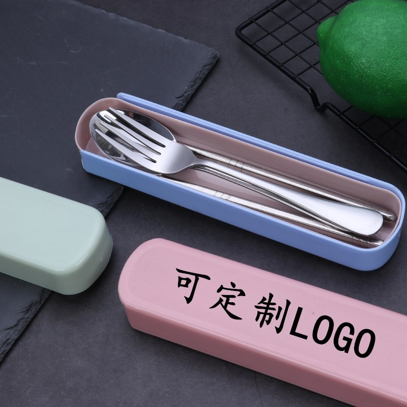 日本式ステンレスポータブル食器学生箸スプーンフォーク収納ボックスセットギフトカスタムlog