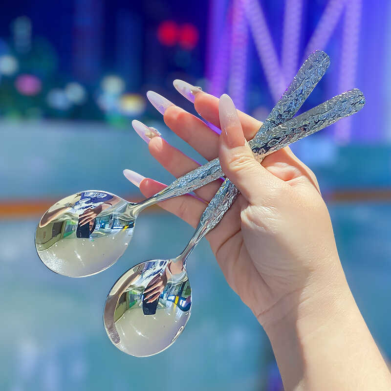 レトロハンマーポイントスプーンステンレスハンマースプーン家庭用厚いスプーン子供の食事スプーン高颜値デザートスプーン