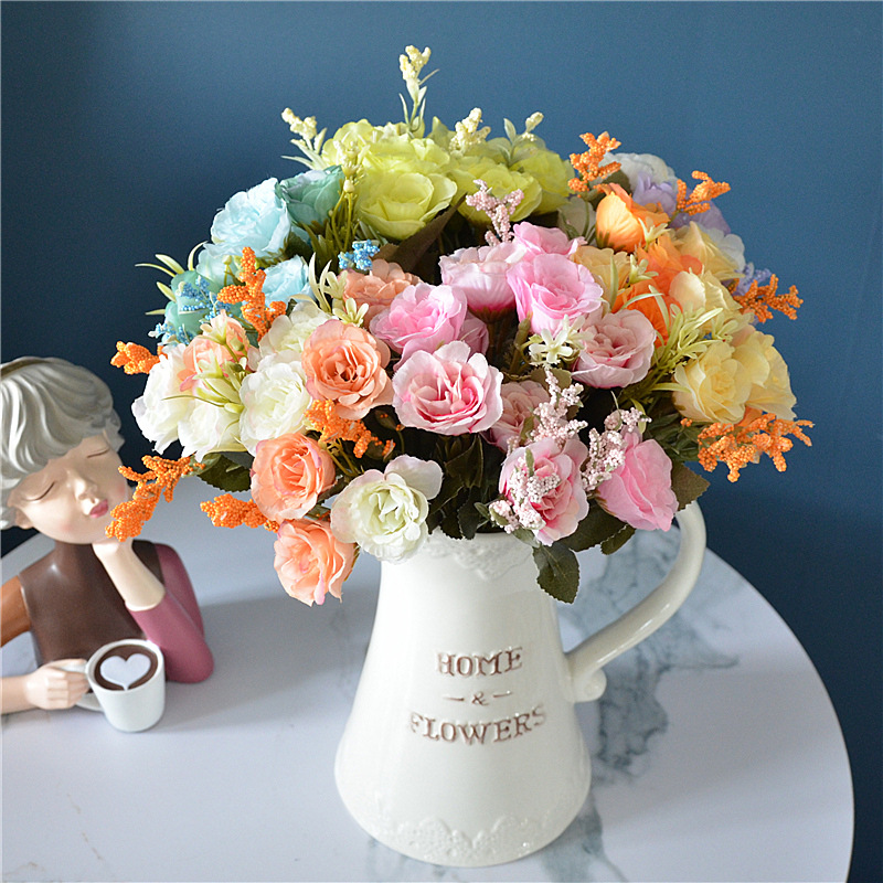 10頭の楽しいバラの花束の家の装飾の絹布のシミュレーションの小さい花の清新な風の瓶の花のクロスボーダーの結婚祝いの生け花