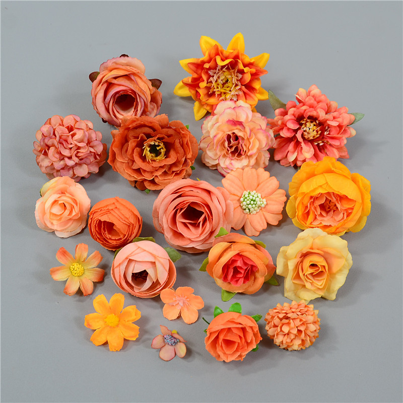 オレンジ造花シルクフラワーウェディングフラワーアレンジメント装飾品学士帽子頭飾りペンダント古代スタイルの装飾ハロウィン