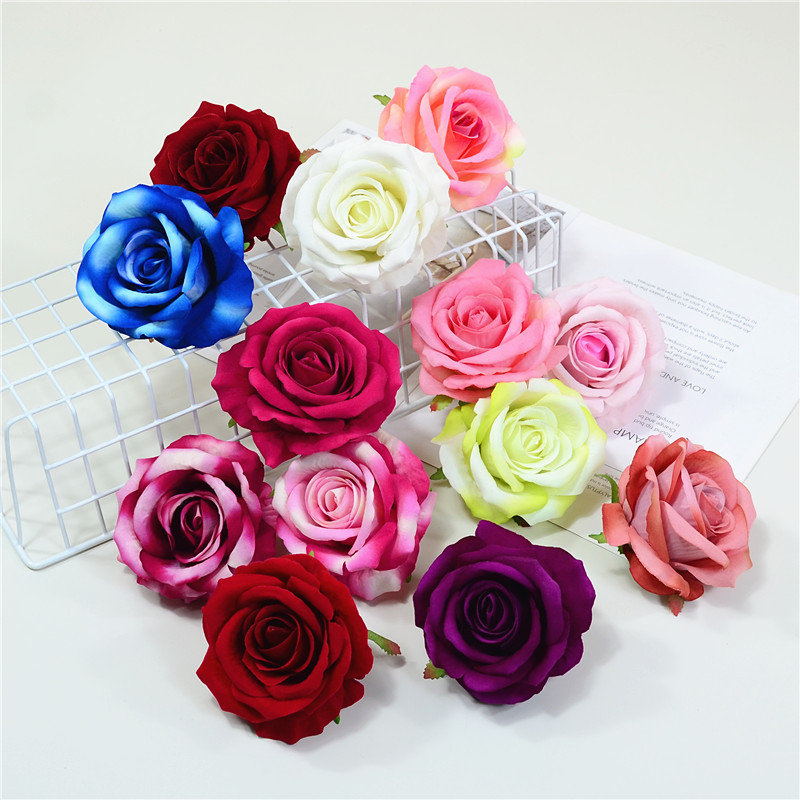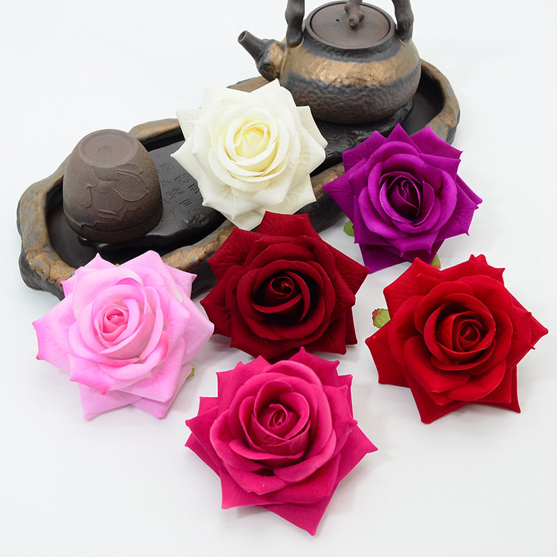 模造ベルベットバラ花卸売り結婚車diy装飾花頭刺繍バラ花壁テーブル花絹花