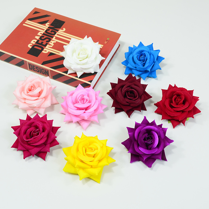 小さなバラの花をシミュレートする6cm絹布バラの花の頭卸売り帽子装飾花の頭結婚式の花の壁生け花diy