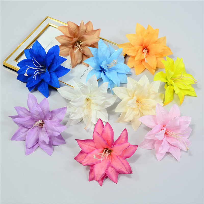造花の香水百合の花頭、直径13cm、フェイクフラワーバスケット、開店装飾、衣装、ヘアピンアクセサリー