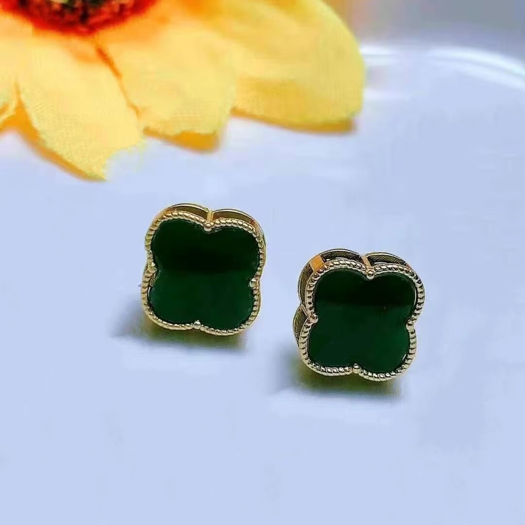 天然和田墨玉幸運四葉草S925銀象眼玉ピアス