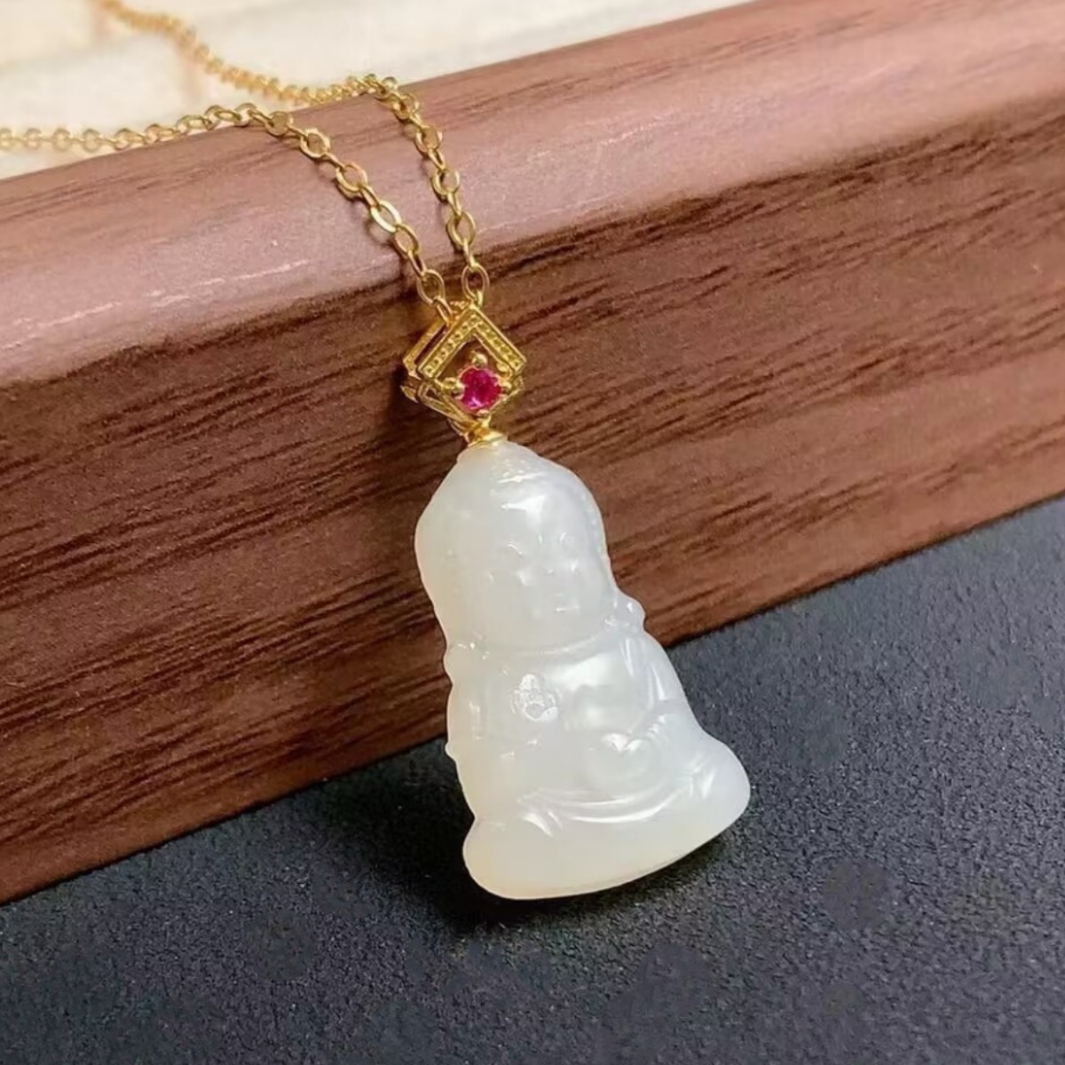 鄒六禧天然和田玉ペンダントs 925銀は赤ちゃんの仏公玉DIYアクセサリーのペンダントを飾っています。