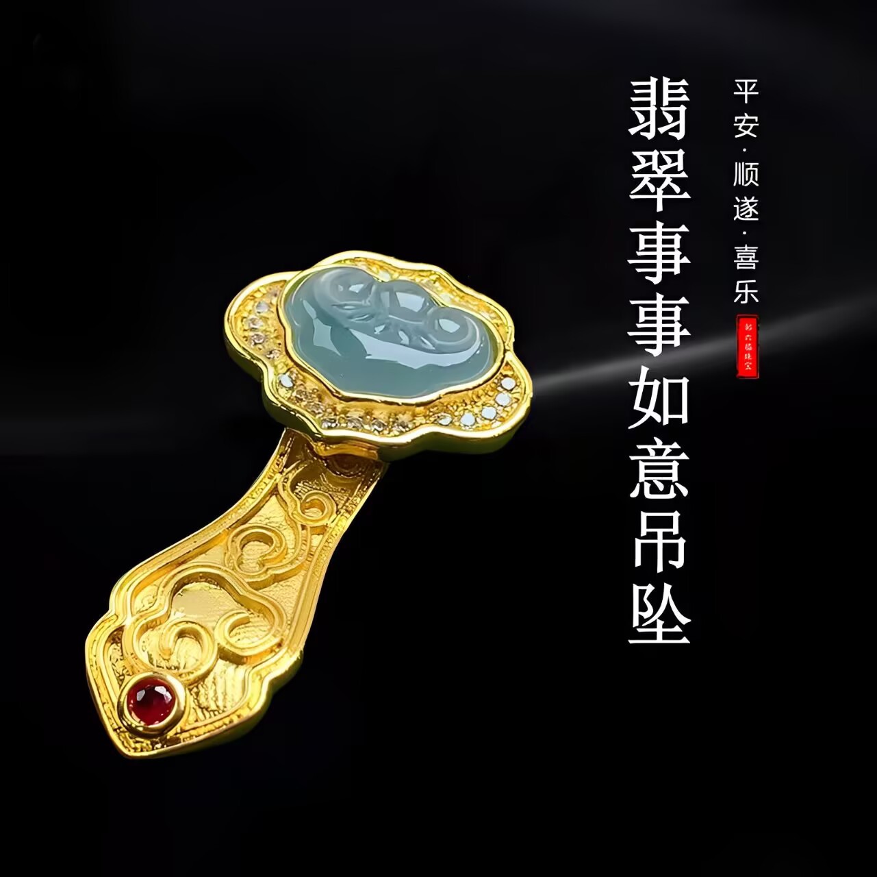 天然a品翡翠如意ペンダント銅モザイク金工芸民族風アクセサリーネックレスメーカー