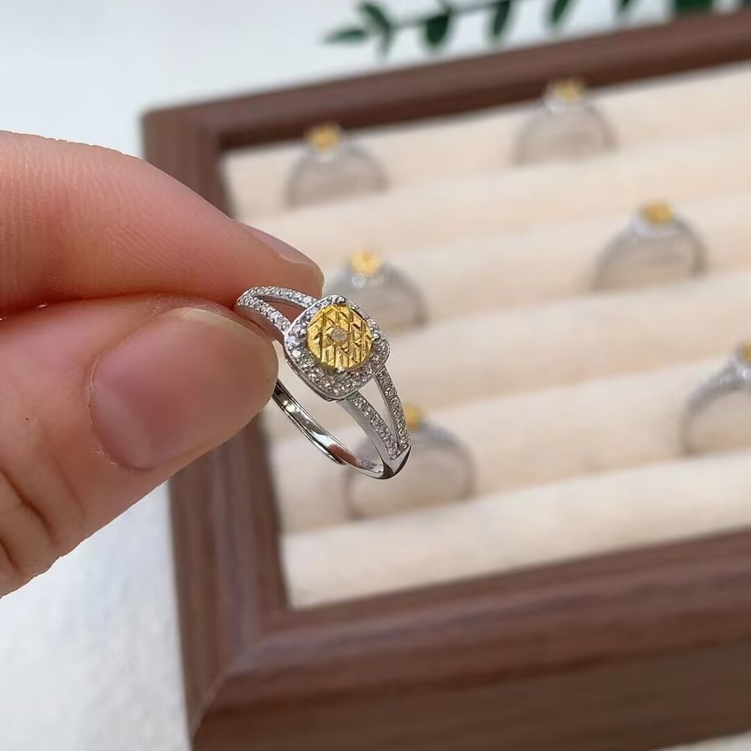 韓国版のファッション的な気質の方糖の指輪のS925銀は真のドリルの彼女をはめ込んではっきりしています。