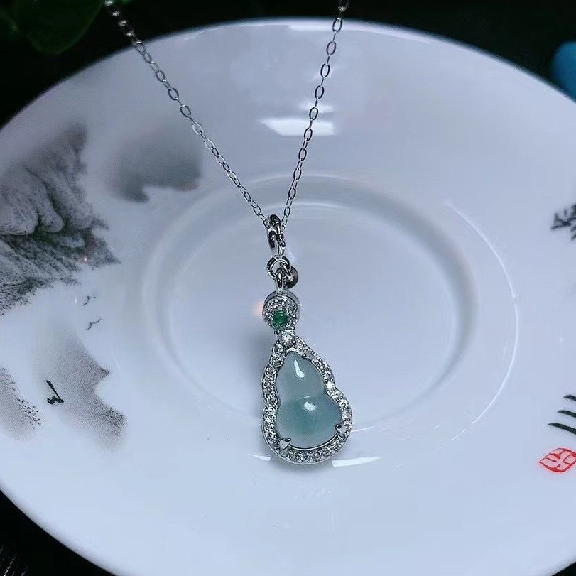天然翡翠藍水ひょうたんペンダントS925銀モザイク福禄玉ペンダントネックレスペンダントアクセサリー卸売り