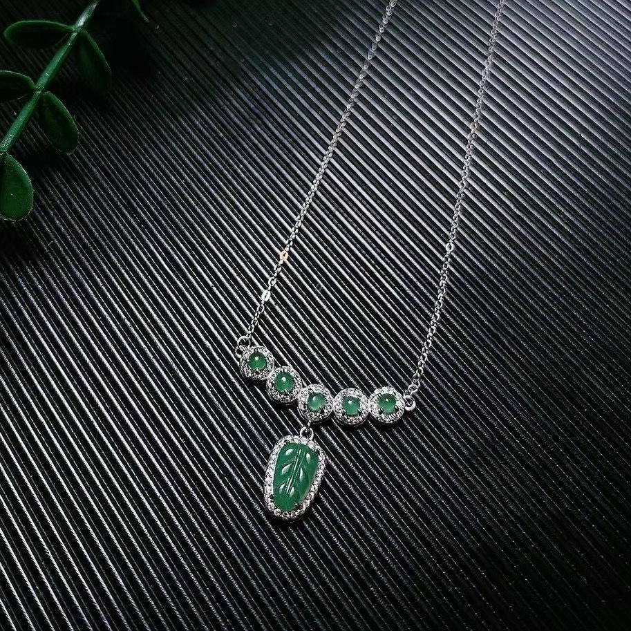 メーカーの天然危険材料翡翠陽緑葉ネックレス一体チェーン925銀モザイクファッションストラップチェーン