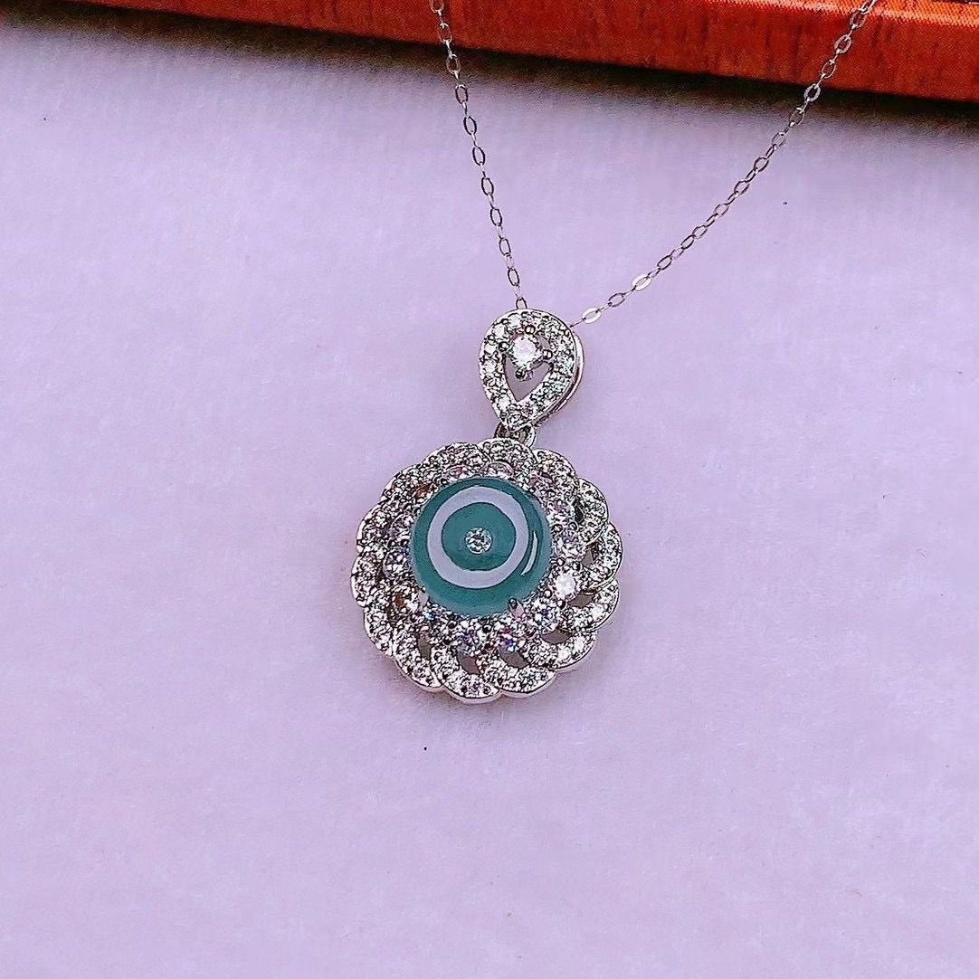 鄒六禧天然翡翠藍水危険材料福瓜ペンダントS925銀モザイク新型鎖骨チェーンアクセサリー卸売り